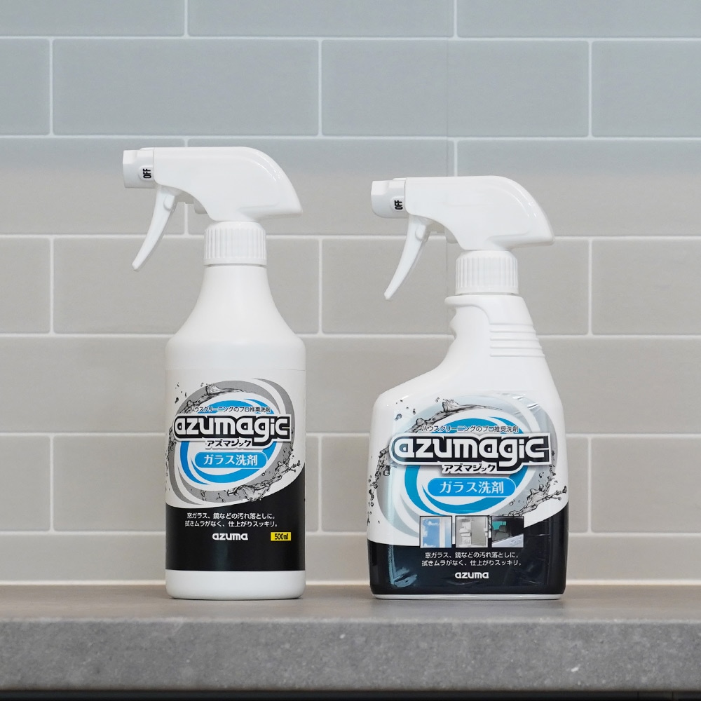 「 アズマジック 」はハウスクリーニングの現場で使用している洗剤をベースに、家庭用にアレンジした強力洗剤。ミスト状の洗剤が汚れに入り込み、細かく分解し、汚れをスッキリ落とします。
