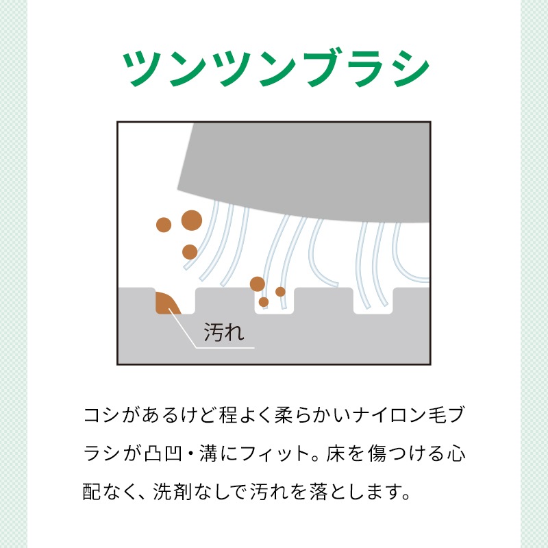 2種類のアズマブラシ(W繊維とツンツンブラシ)を両面に貼り付けているので汚れのタイプに合わせて使い分けできます。