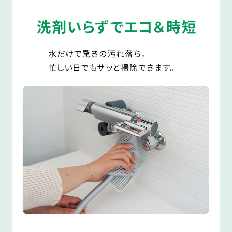 水だけで驚きの汚れ落ち。忙しい日でもサッと掃除できます。