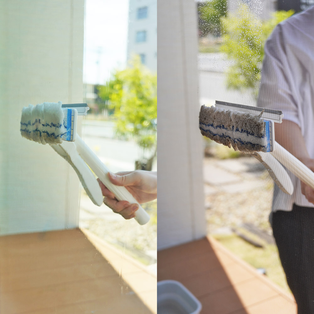 マイクロファイバーとブラシ繊維が網戸の目に入り込むので網戸の汚れはもちろん、窓ガラスについた皮脂・泥などの汚れもキレイにかき取ります。