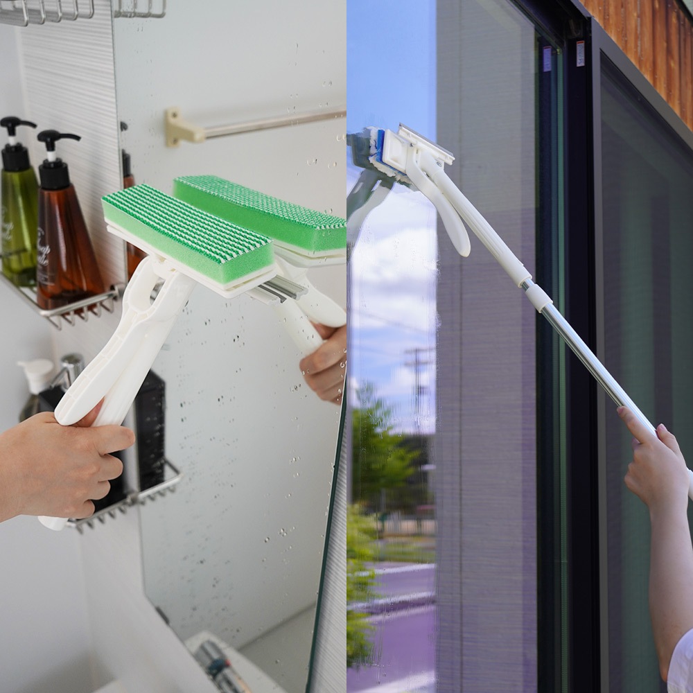 1つの道具で窓と網戸の両方をお掃除したいというお客様の声から生まれました。主婦のアンケートにて、「なかなか手がつけられないお掃除」の上位に「窓・サッシ・網戸」が挙がるため、より手軽にお掃除ができる仕様にと考えました。ヘッドをバケツに入る小ぶりなサイズにし、レバーで簡単に水を絞れる仕様にして、寒い冬など水に触れるのをためらう時にも使いやすい商品にしました。マイクロファイバー使用で洗剤を使う必要がなく、地球とお財布にやさしい仕様にしました。