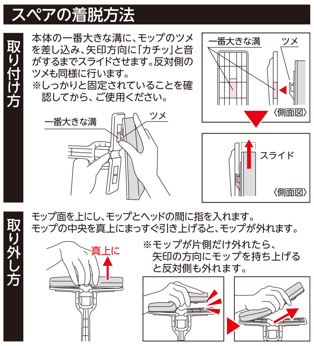 ・硬いゴミが付着したまま使用すると清掃面に傷がつく恐れがあるため、取り除いてからご使用ください。