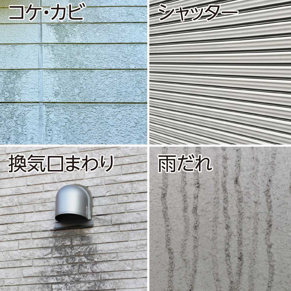 コケやカビ、シャッター、換気口まわりの汚れなど、気になっていた外壁のお悩みに。ぜひお試しください。