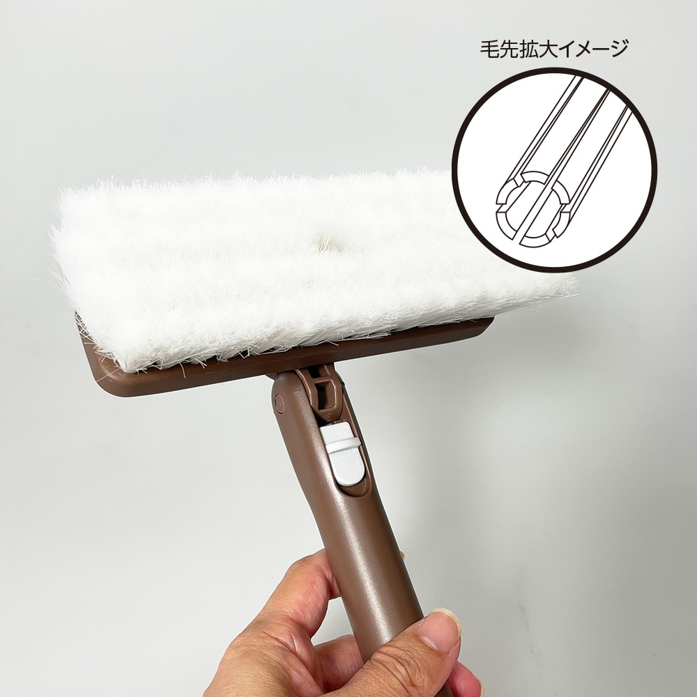 毛がしなる程度にブラシを押し当てて使用することで、清掃面にしっかりフィットします。