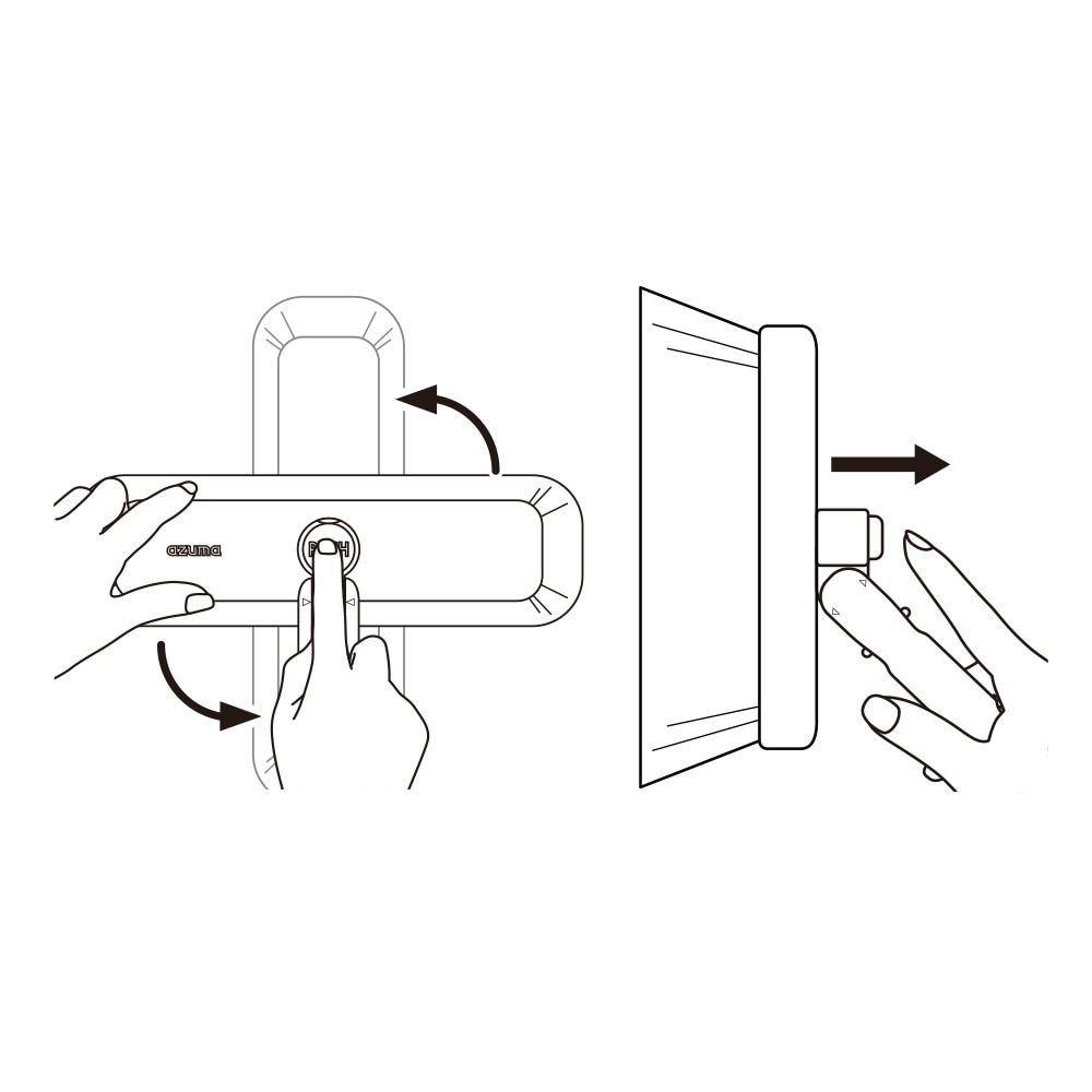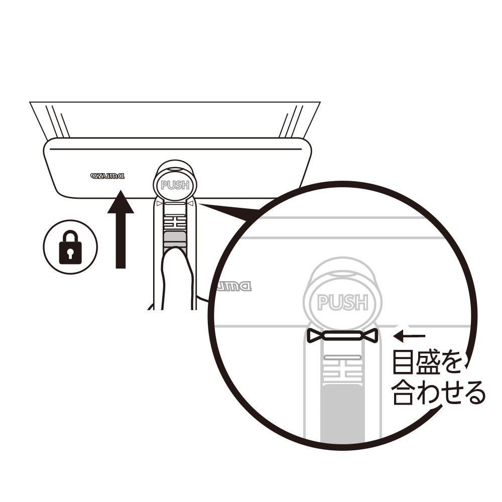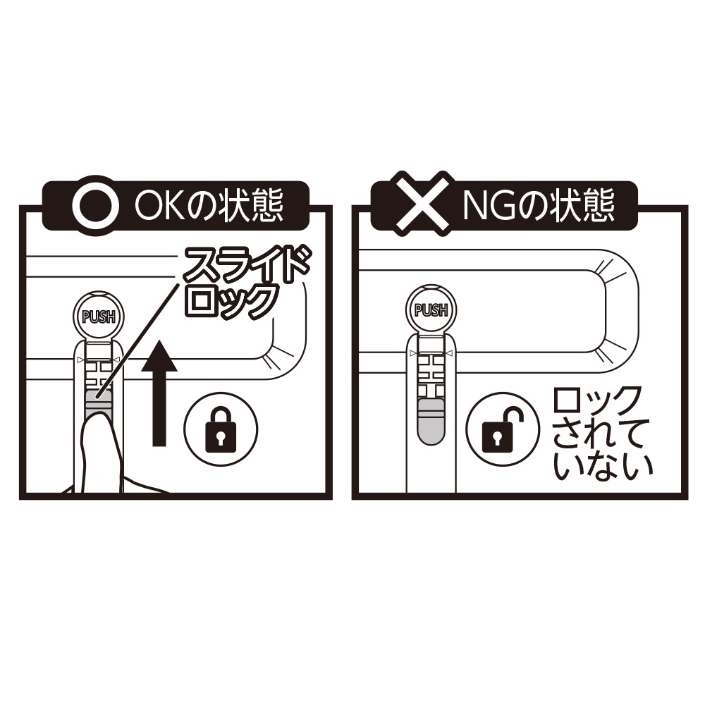 【注意】スライドロックをロックをせずに、【PUSH】ボタンを押すことはできない構造になっています。