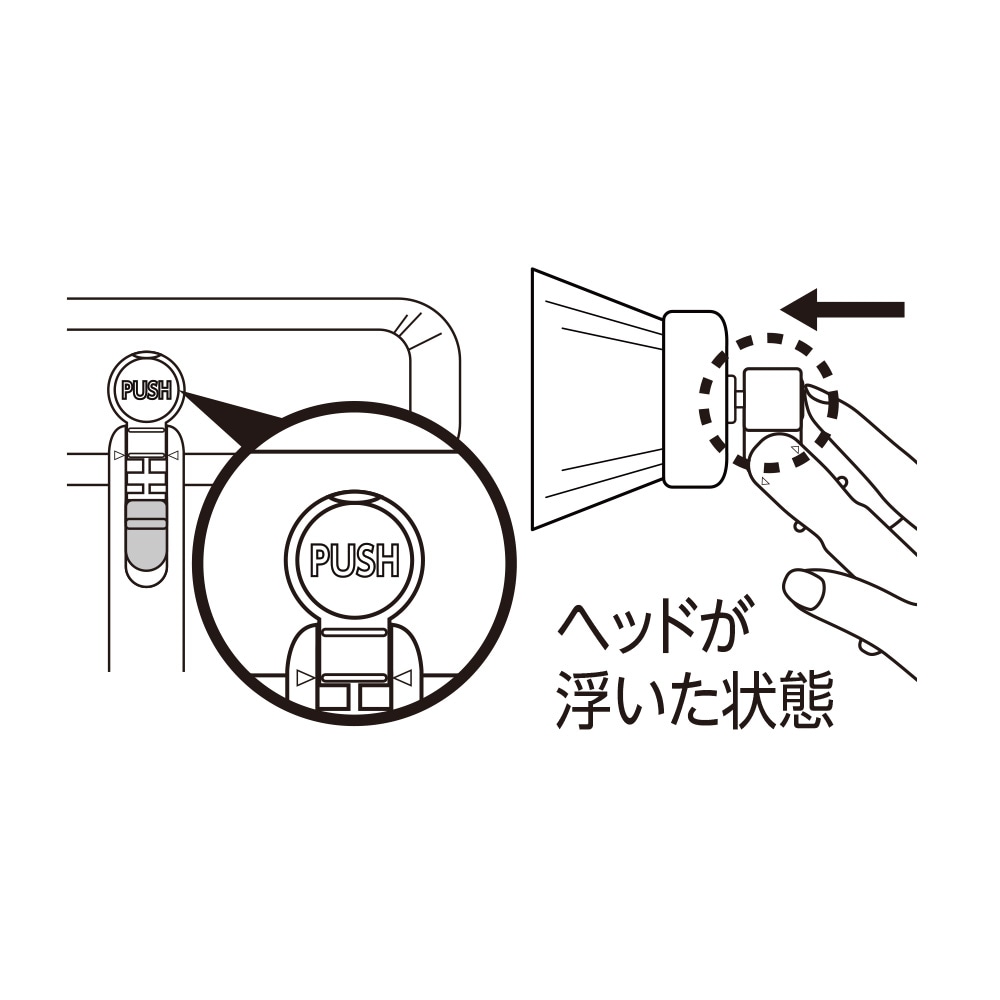 ・破損するため、ヘッド部を外す時は必ずボタンを押してください。