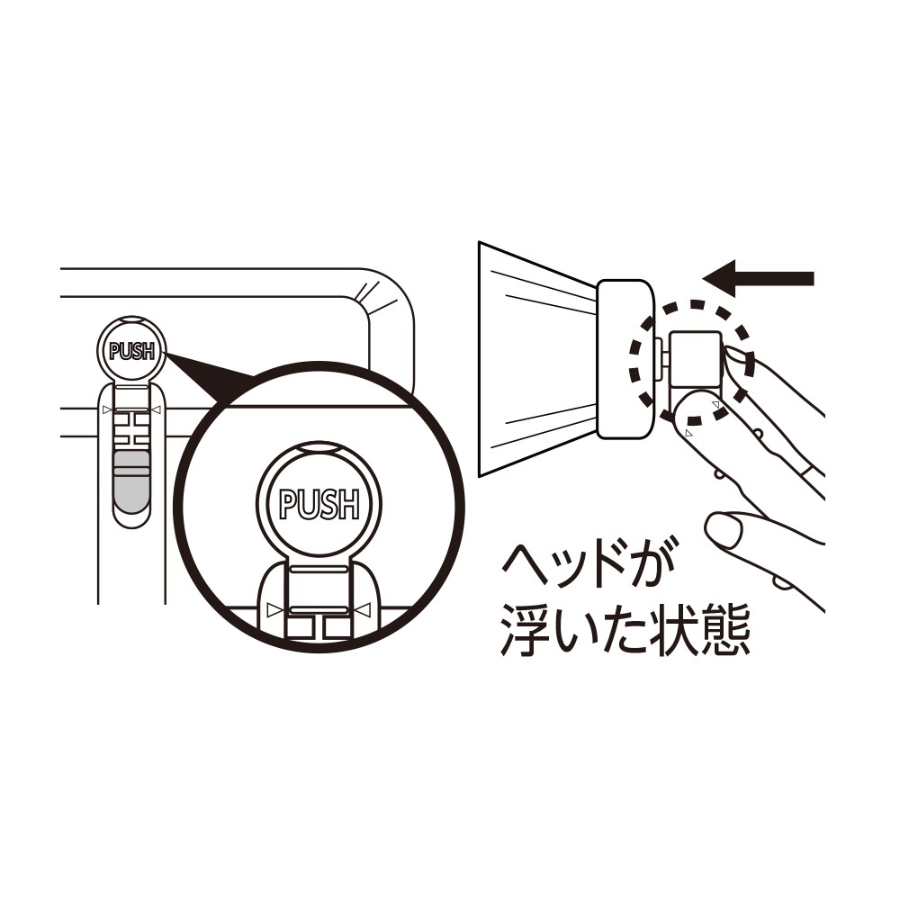②ヘッドの【PUSH】ボタンを押します。ヘッドが浮いた状態になります。