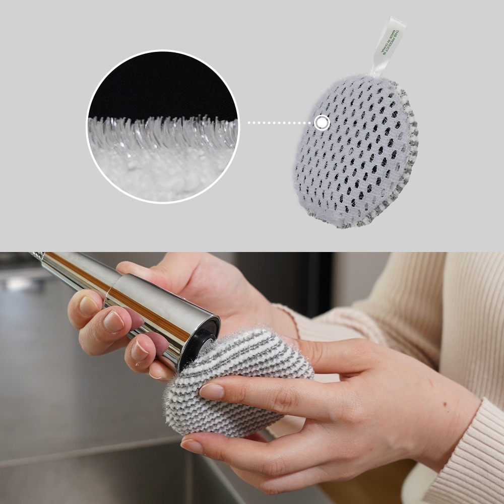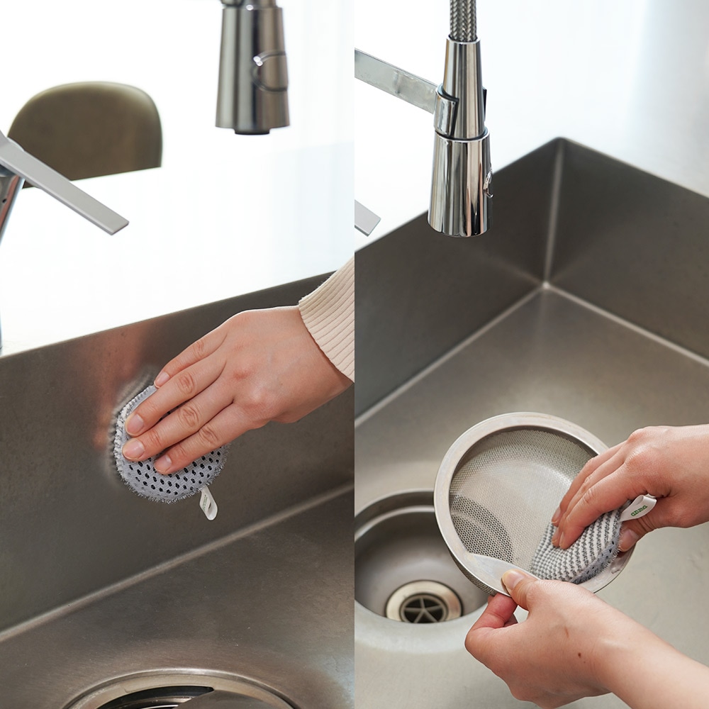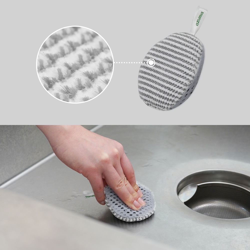 キッチンの水まわりには、場所ごとに異なる汚れが潜んでいます。ザラついたヌメリ、細かいすき間の汚れ、こびりつき……。 すべてを落とすには掃除道具をいくつも使い分ける必要があり、そんな日々の手間に、私たちは向き合いました。 これまでの自社商品にはなかったキッチン向けの新しい形として、「これだけでしっかり落とせる」掃除道具を目指し、そこで選んだのが、アズマの中でも特に人気の「W繊維」と「ツンツンブラシ」。 異なる特長を持つ2つの“アズマブラシ”を組み合わせ、使いやすさと汚れ落ち、どちらもあきらめない設計に仕上げました。 握りやすい形状とサイズ感にもこだわり、毎日の掃除が手軽に続けられるよう工夫しています。 毎日の掃除がちょっとラクになって、「気になったら、サッと使える」そんな存在になれたらと思っています。