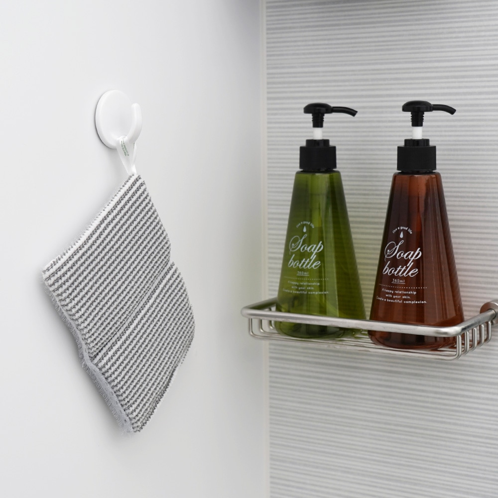 本来なら2つ必要な掃除道具を1つにぎゅっとまとめました。 狭いお風呂でも邪魔にならず、吊るして乾かせて清潔。