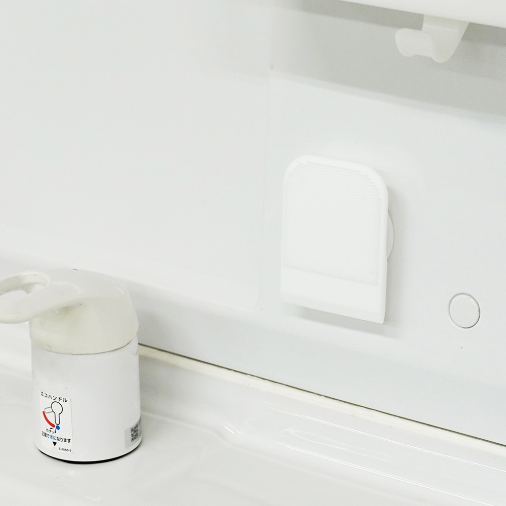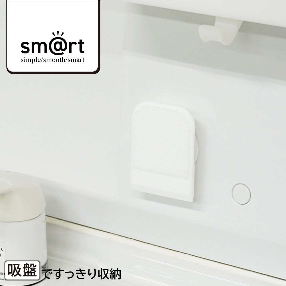 吸盤で貼り付けることにより、ブラシ・スクイージーが洗面台に触れず、衛生的に収納できます。