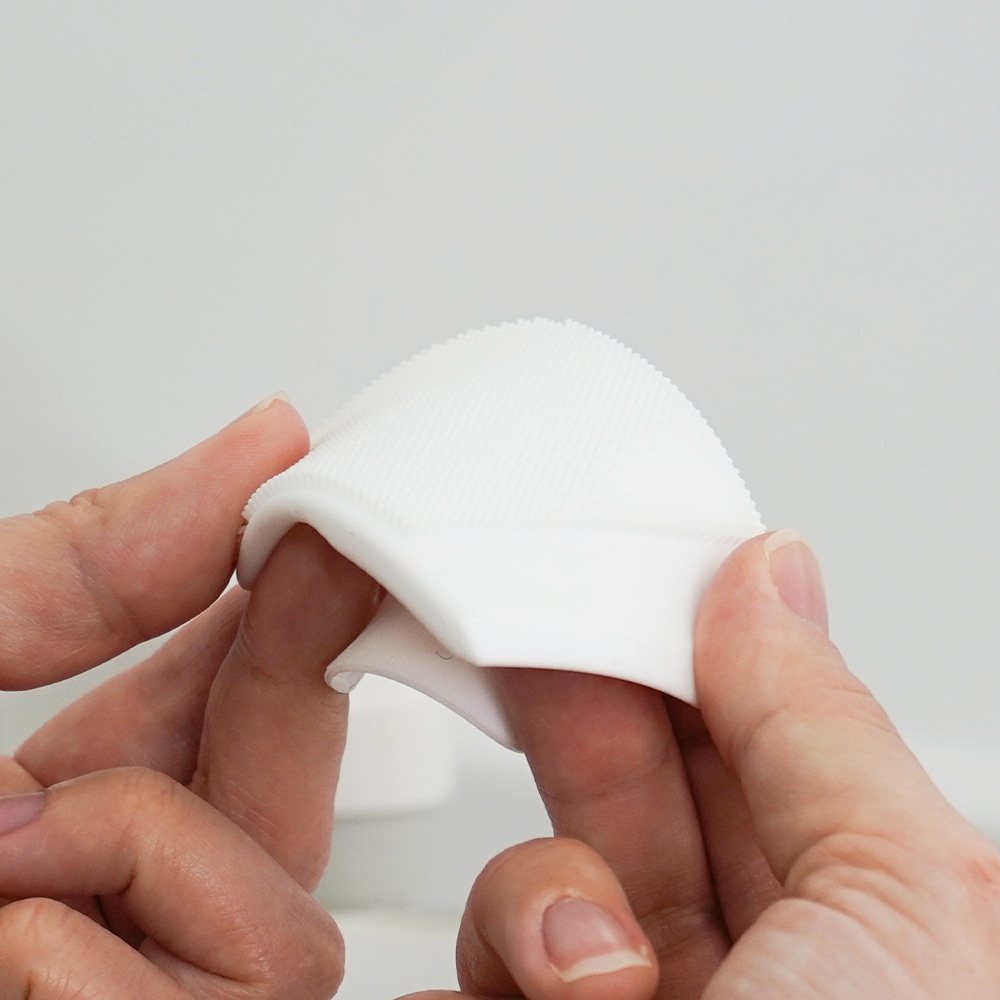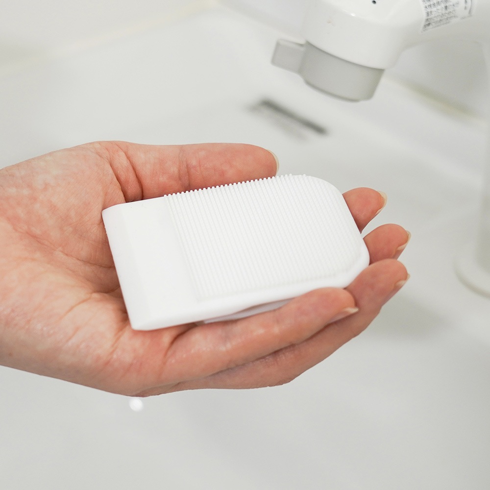 細かなシリコンのブラシがやさしく汚れをかき取ります。