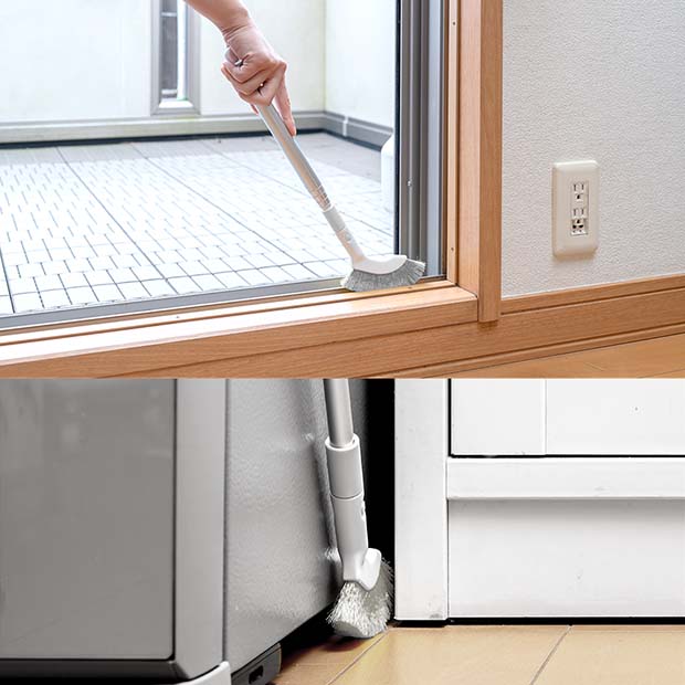 洗濯機周り、冷蔵庫周り、テレビの台周りのすき間、サッシレール、ドアレール、巾木などのお掃除に。