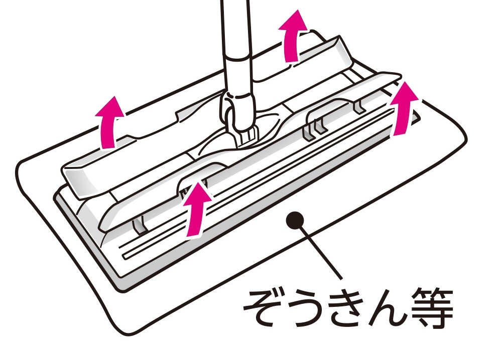 ・ぞうきんやシート等を取り付ける際は、ヘッドのフタに指を挟まないようにご注意ください。特に小さなお子さまはご注意ください